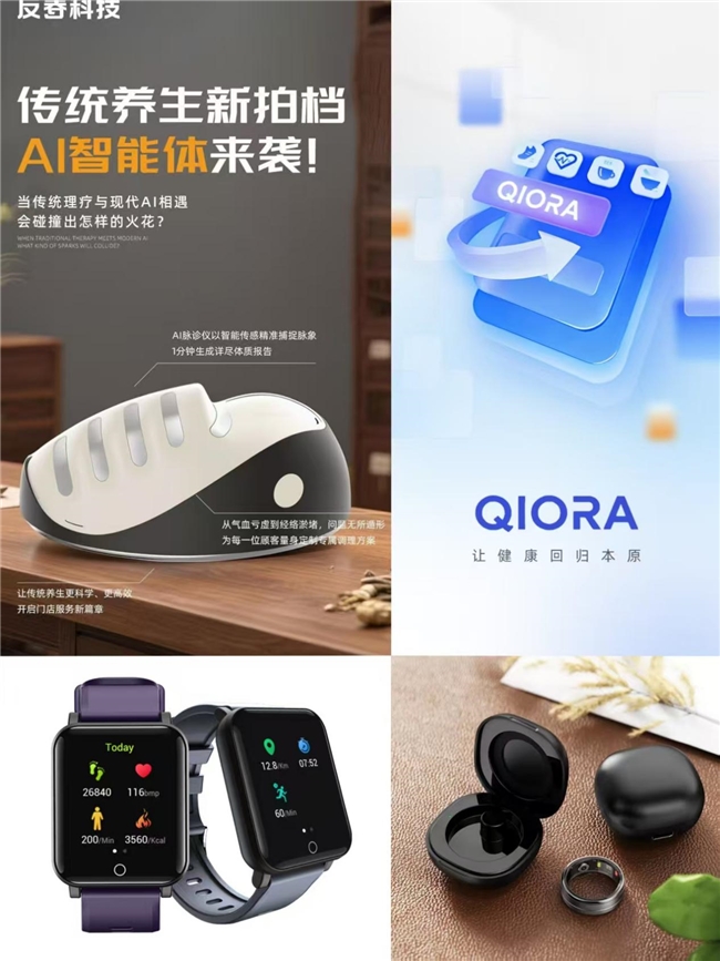 反卷科技脉诊仪(图一),反卷科技智能AI养生中枢QIORA(图二),反卷科技智能携带设备(图三图四)