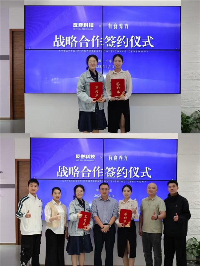 11月13日,反卷科技(广东)有限公司(以下简称“反卷科技”)与惠州有食养方健康管理有限公司(以下简称“有食养方”)在惠州正式签署战略合作协议,双方将在AI智能检测数据摆正、养生产品研发、养生内容输出三大核心板块展开深度合作,共同推动“AI+中医养生”的产业化落地与创新发展。